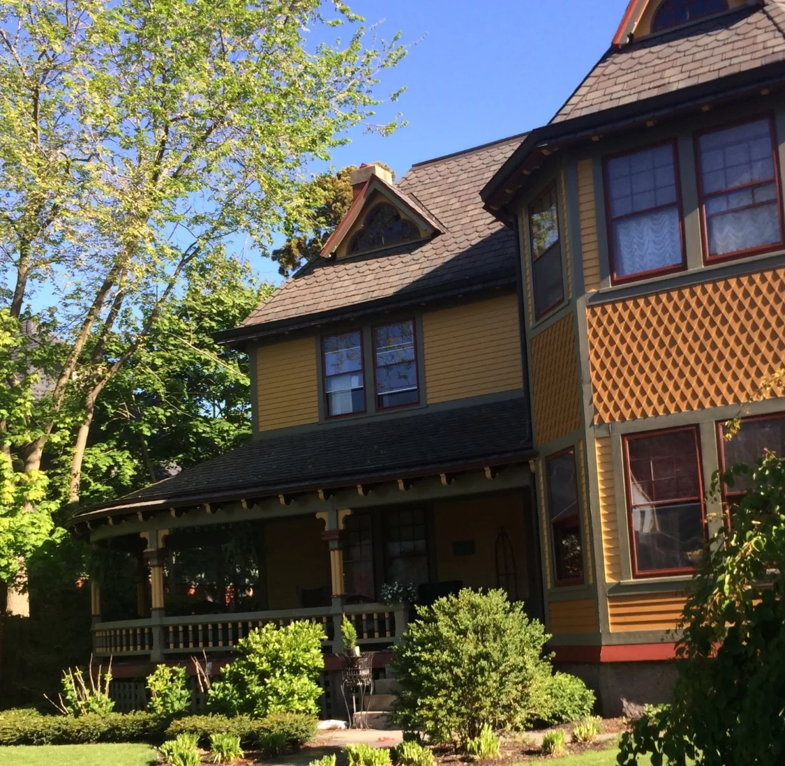 Both of these homes are amazing example of late 1800's Shingle Style homes. with tons of contrasting patterns and colors. Luckily both are incredibly well kept.